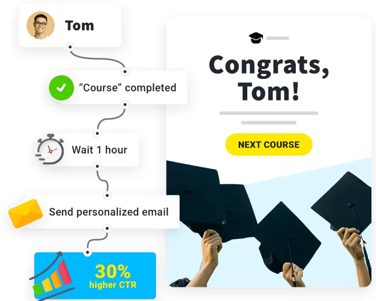 With 60+ pre-built flow templates covering welcome series, abandoned cart, post-purchase, and re-engagement sequences, Mailchimp gets you running faster. Automated emails produce up to 127% higher click rates than bulk sends. On Standard and Premium plans, you get multiple starting points, branching logic, and up to 200 flows.
