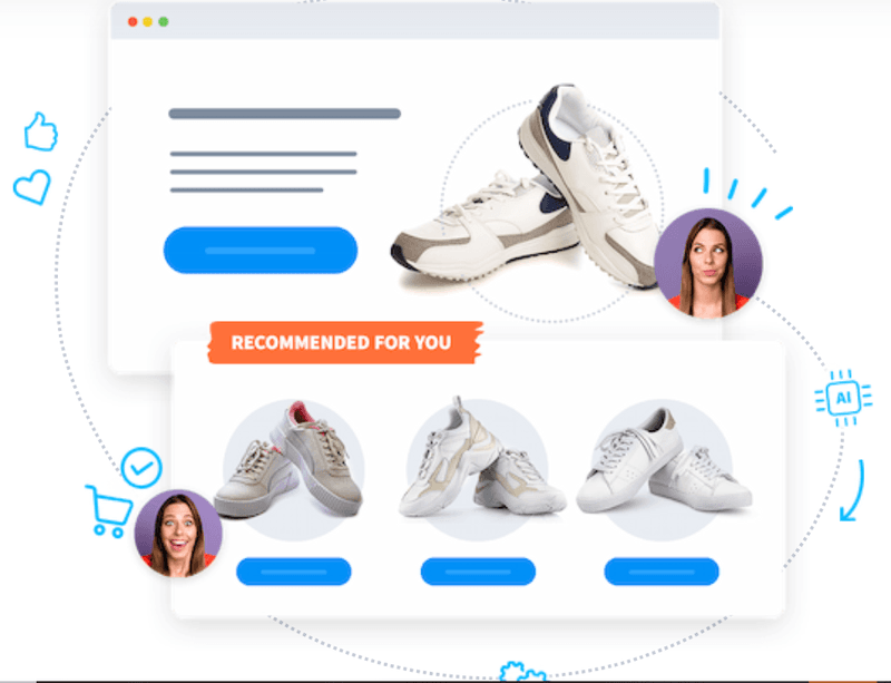 Its AI product recommendation engine works both on-site and in emails, reporting up to 33% higher average order value and 70% higher click-through rates.