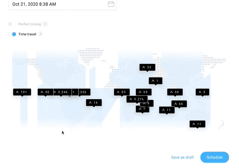 Time Travel delivers emails at the same local clock time regardless of time zone. Both options let you choose between behavior-optimized delivery and consistent geographic timing.