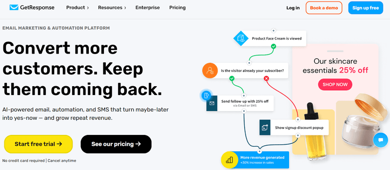 The recently launched Price Drop Campaigns automatically alert browsers when products they viewed drop in price. GetResponse can also recover abandoned carts from non-subscribers, a capability not all platforms offer.